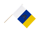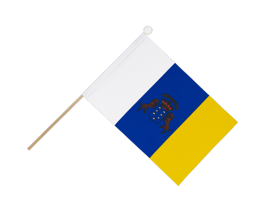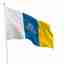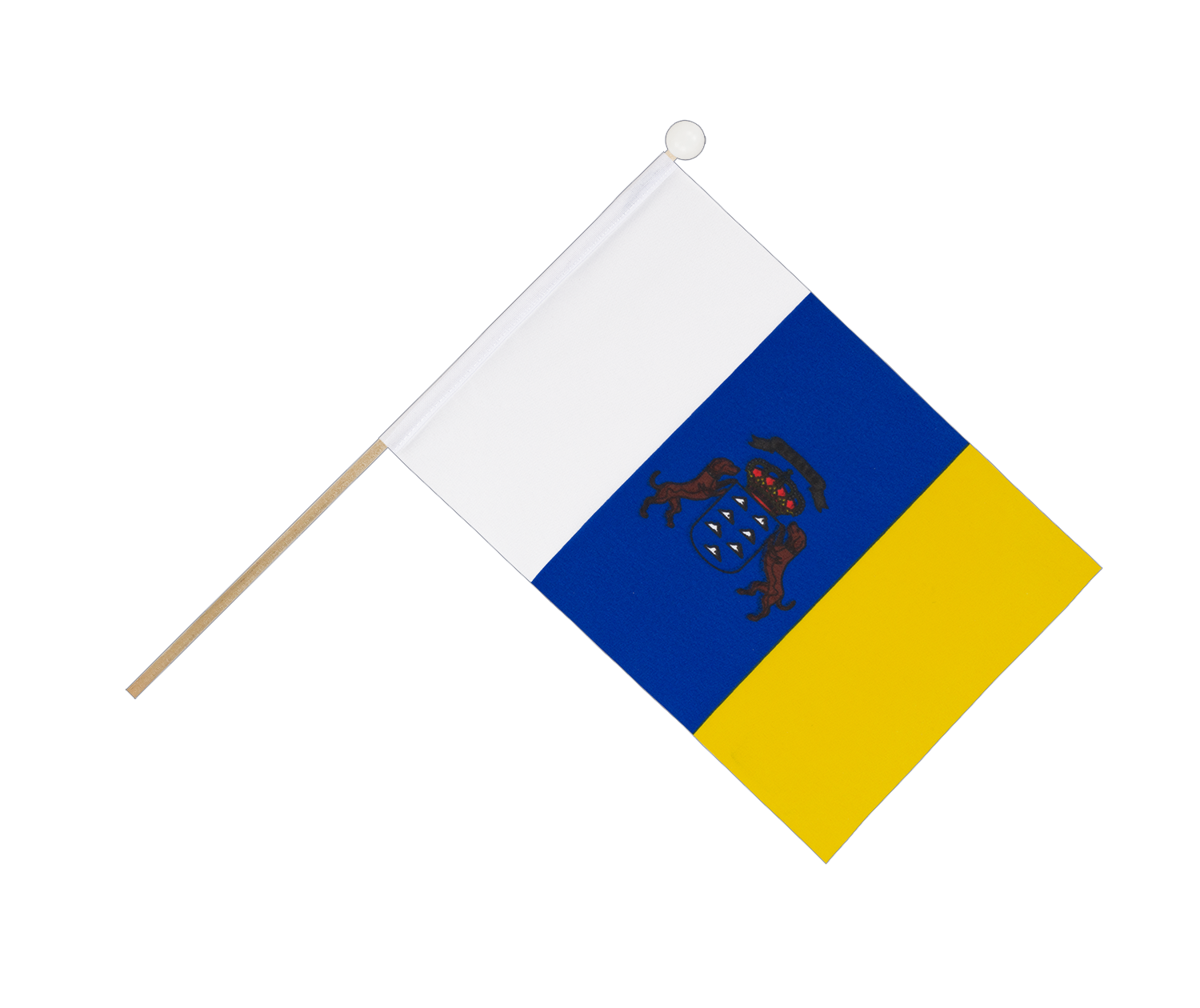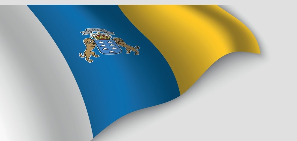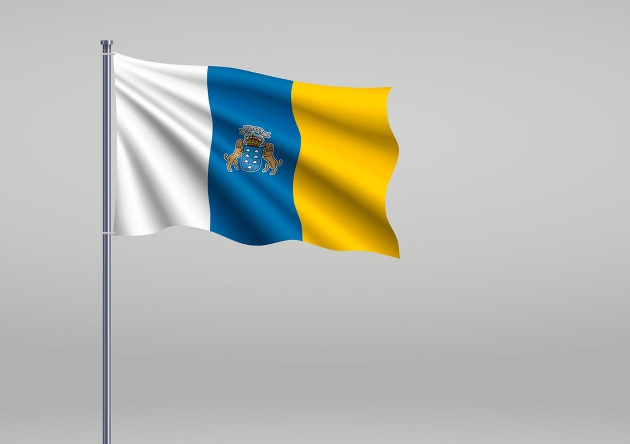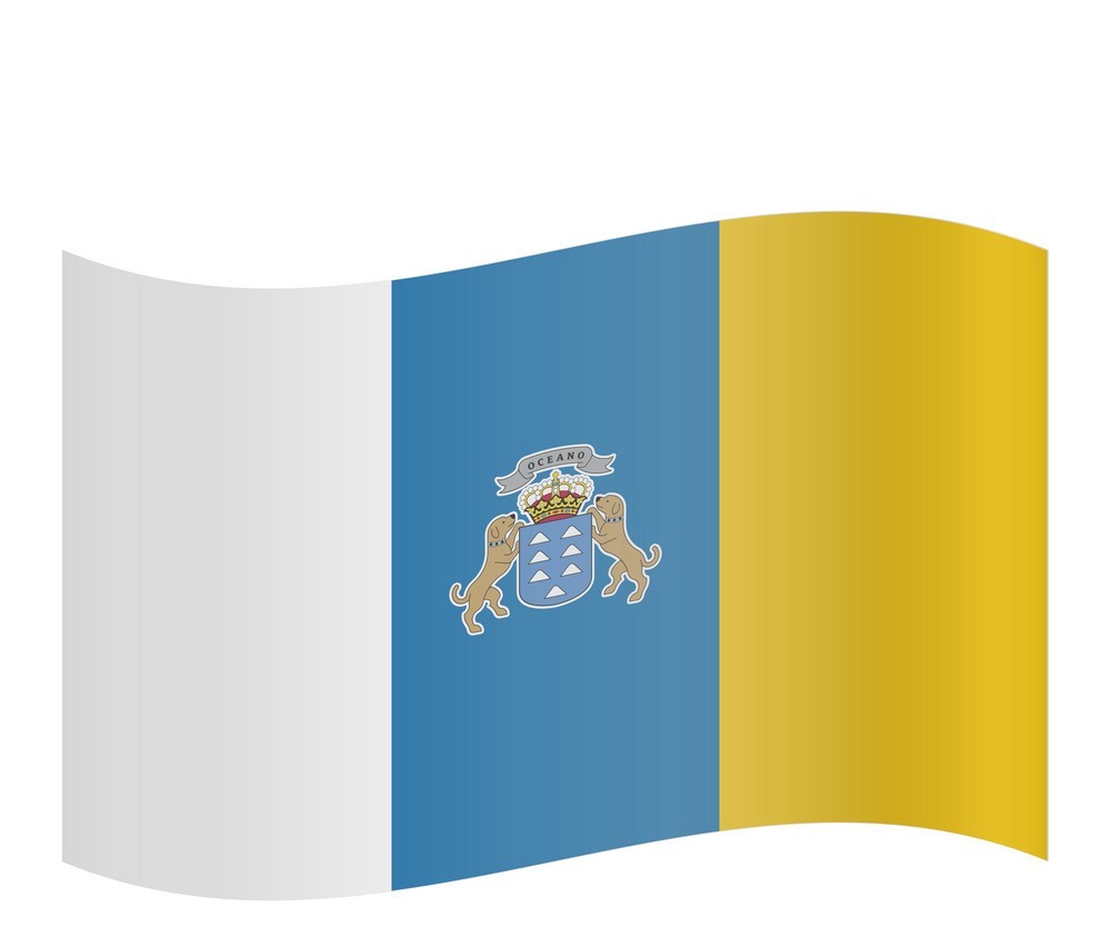 The flag of the Canary Islands consists of two horizontal blue stripes at the bottom and yellow and red stripes of the Spanish flag at the upper left corner on a white field. The Spanish flag colours represent the Spanish association, and the blue stripes stand for the ocean surrounding the islands.