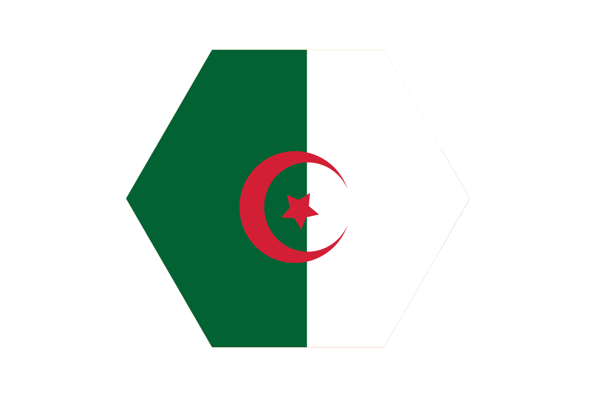 On July 3, 1962, Algeria adopted its national flag as it came free from French colonial control. Its two vertical stripes are white to the fly and green to the hoist. In the middle of the flag, embroider a moon and a star. Algerians find great meaning in the colours and symbols on this flag. Green stands for Islam; white stands for peace and purity; the Red Crescent moon and star show Islam and are shown on many flags of nations with the majority of Muslims. Still, this flag connects and symbolises the fight for Algerian independence.