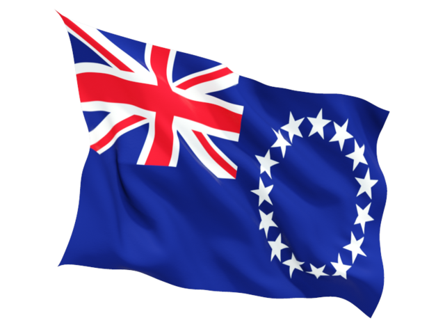 The blue field of the flag of the Cook Islands contains a Union Jack in the top left corner and 15 white stars to represent the 15 islands that form this country. A combination of the local colors, a yellow circle for golden sunshine, a blue ring for Pacific Ocean and unity, and a white star for Tiare Maori, one of the national flowers, as well as four traditional symbols, black and white triangles symbolizing Christianity, together make the flag, which was approved on October 13, 1979.
