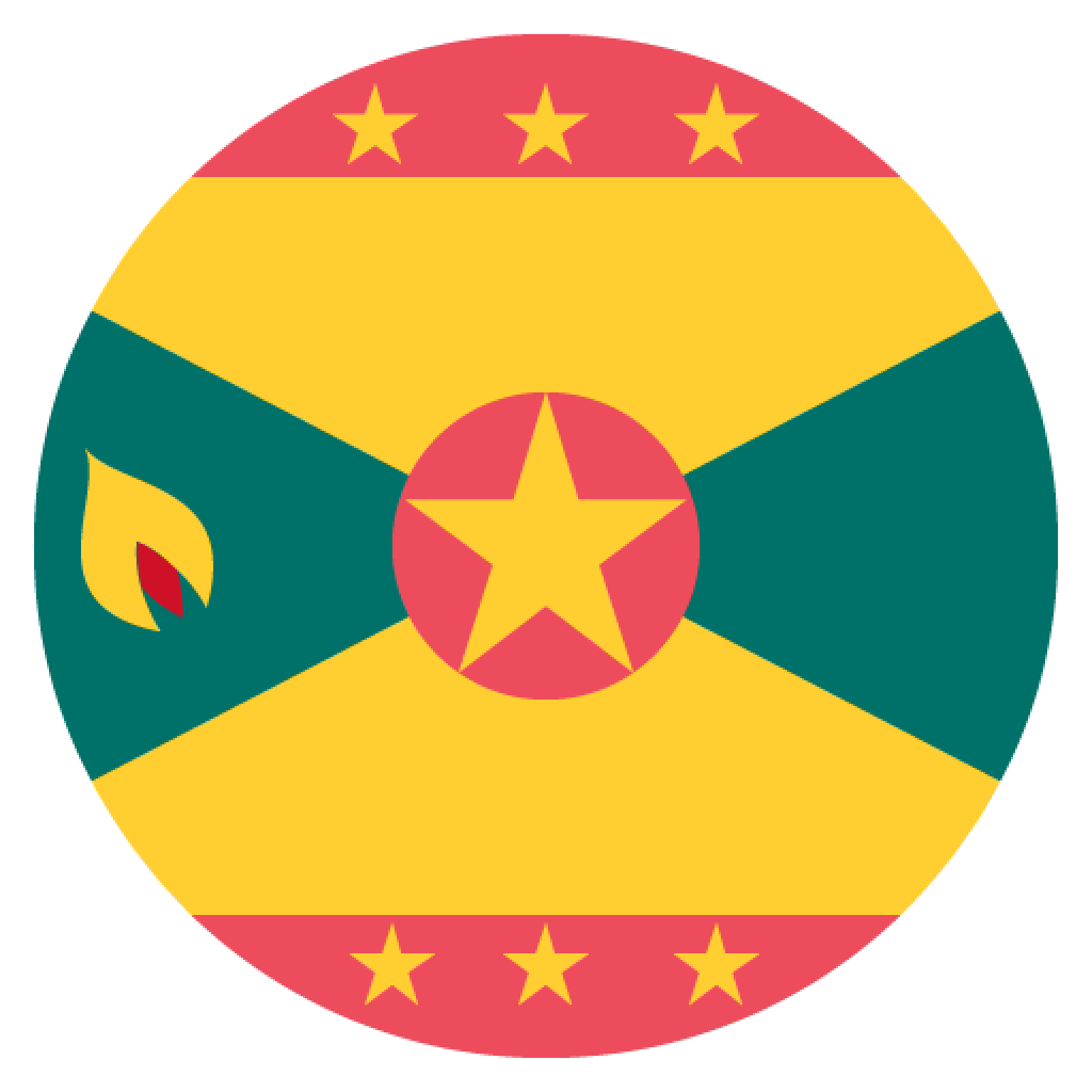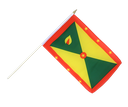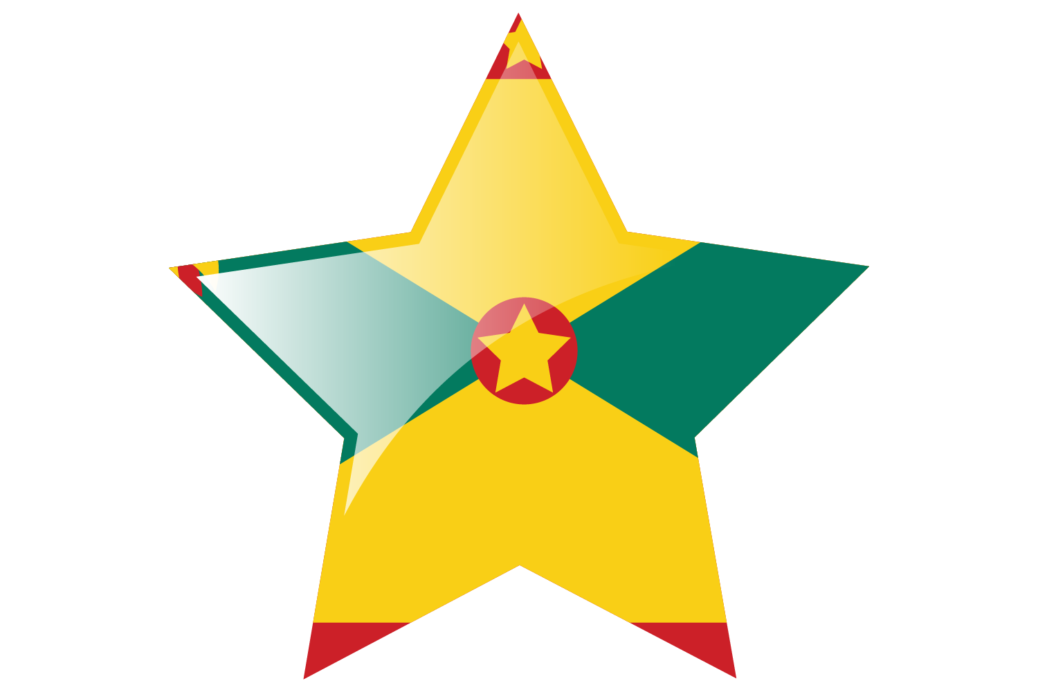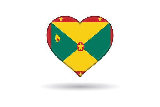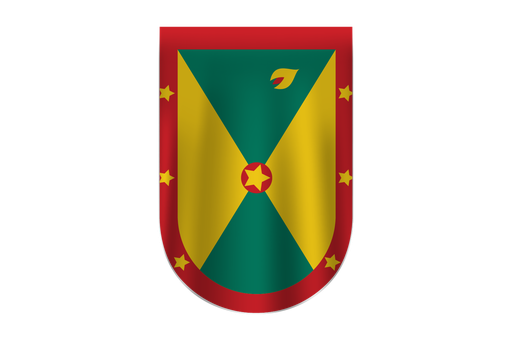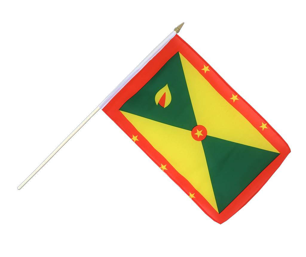 It consists of a red and yellow bicolour of six alternating stripes of equal width. Above the green diamond, which points to the side of the hoist, is a nutmeg in its centre. Yellow means wisdom and warmth, and red represents courage and vitality. The triangle stands for the agriculture of the country. The nutmeg itself also represents Grenada's prime export.