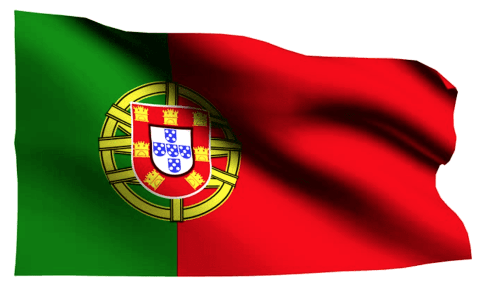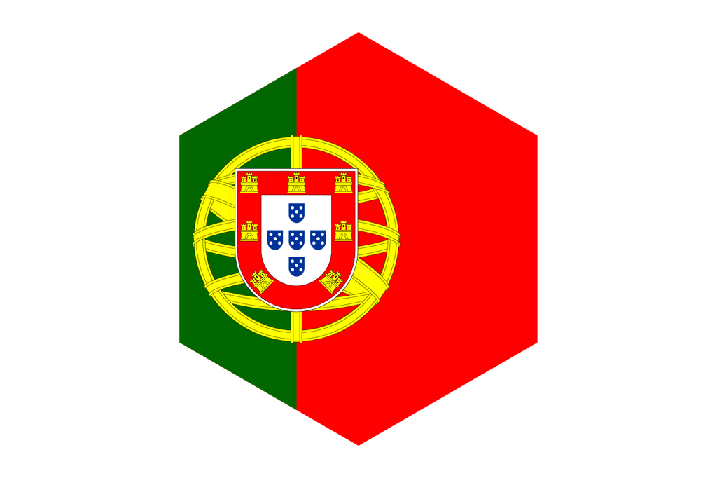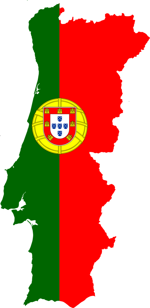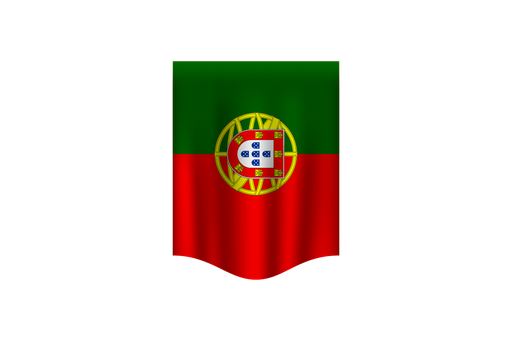 The flag of Portugal is a vertical bicolour, green on the left and red on the right. Underneath the two stripes is a coat of arms with one armillary sphere and seven other castles standing around it, representing seven battles for Portuguese independence.