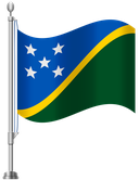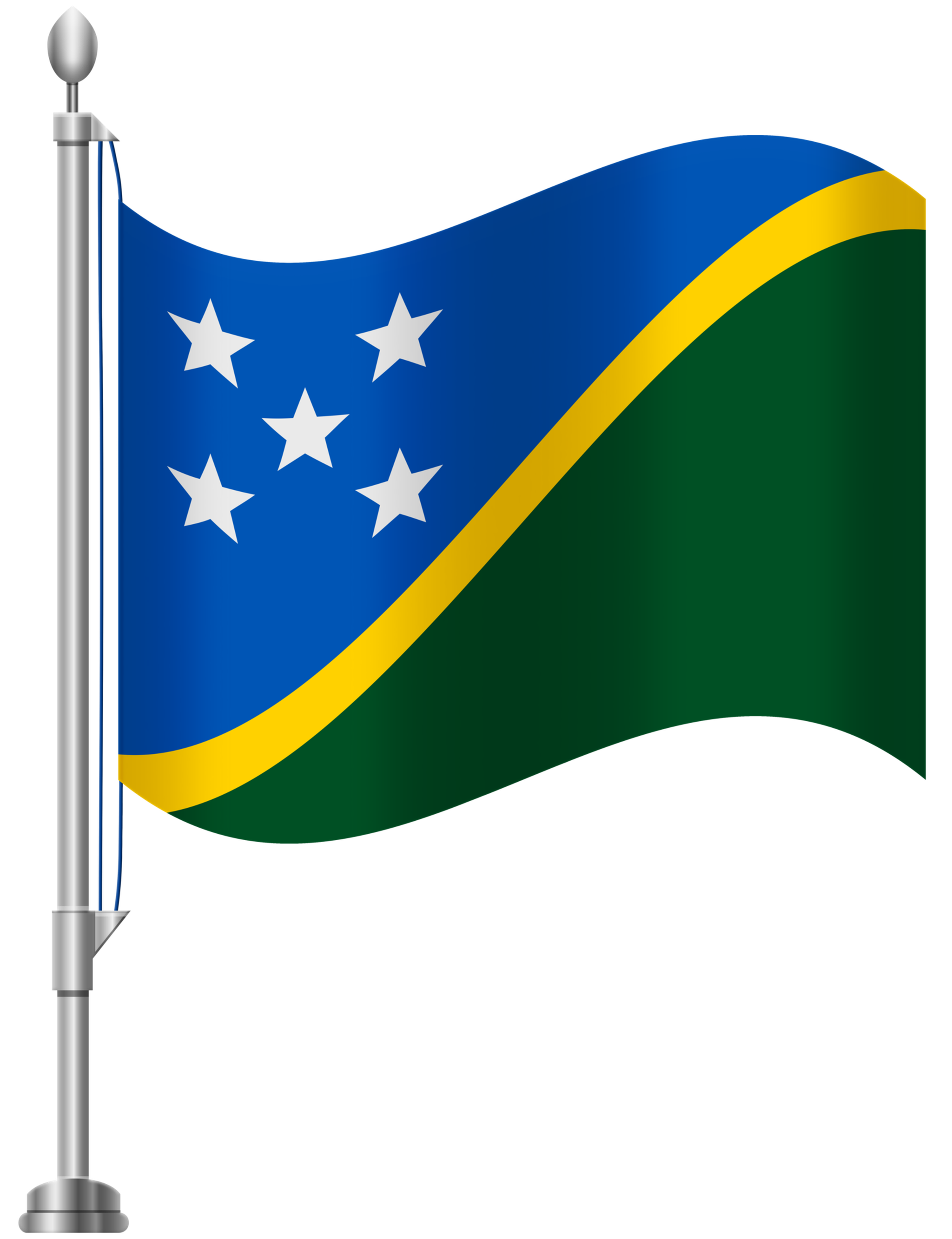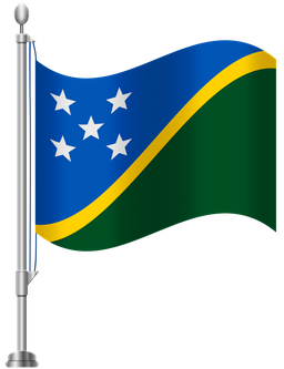 The flag of the Solomon Islands consists of blue and five yellow stars in the upper left corner and a green triangle in the center. The sea is represented by blue, the yellow stars are the five island groups of the country, and the green triangle is for the country's vegetation.