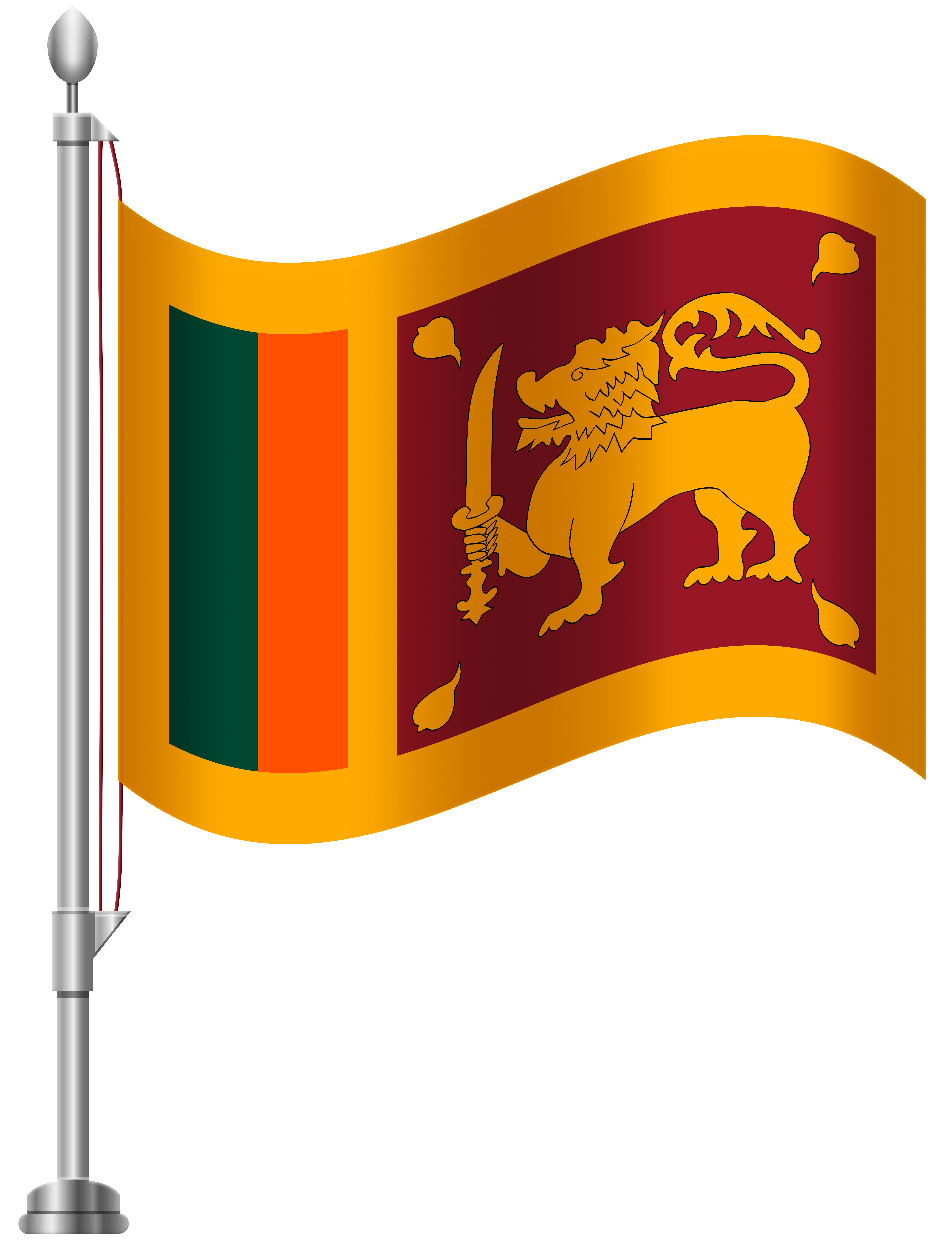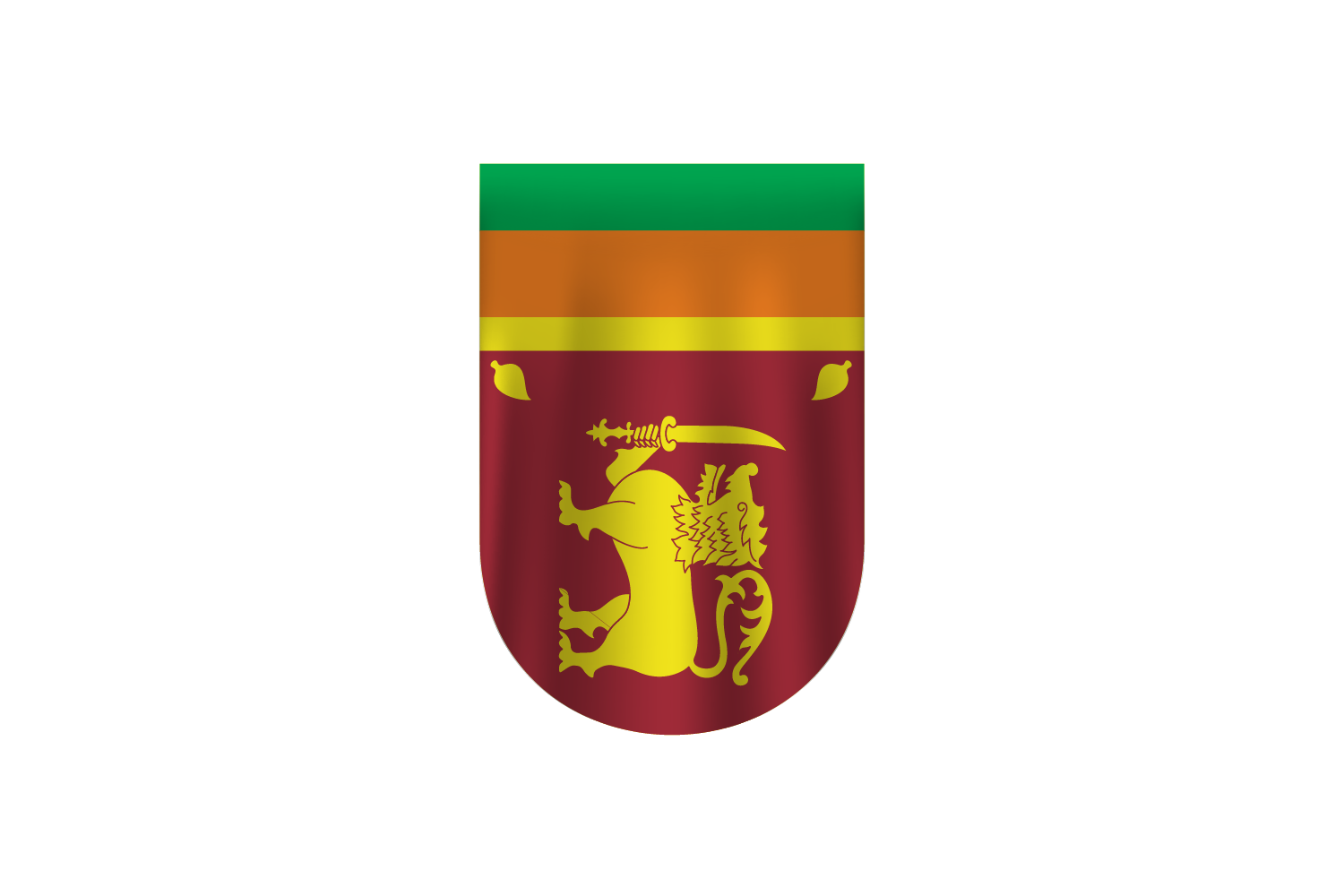 Sri Lanka has two vertical maroon stripes on the hoist side, a yellow field, and a green vertical stripe on the fly side. In the middle is a brandy golden lion wielding a sword. The yellow field is the Tamil minority; the maroon stripes are the Muslim minority; the lion is the Sinhalese majority; the courage and strength of the Sri Lankan people define the green stripe.