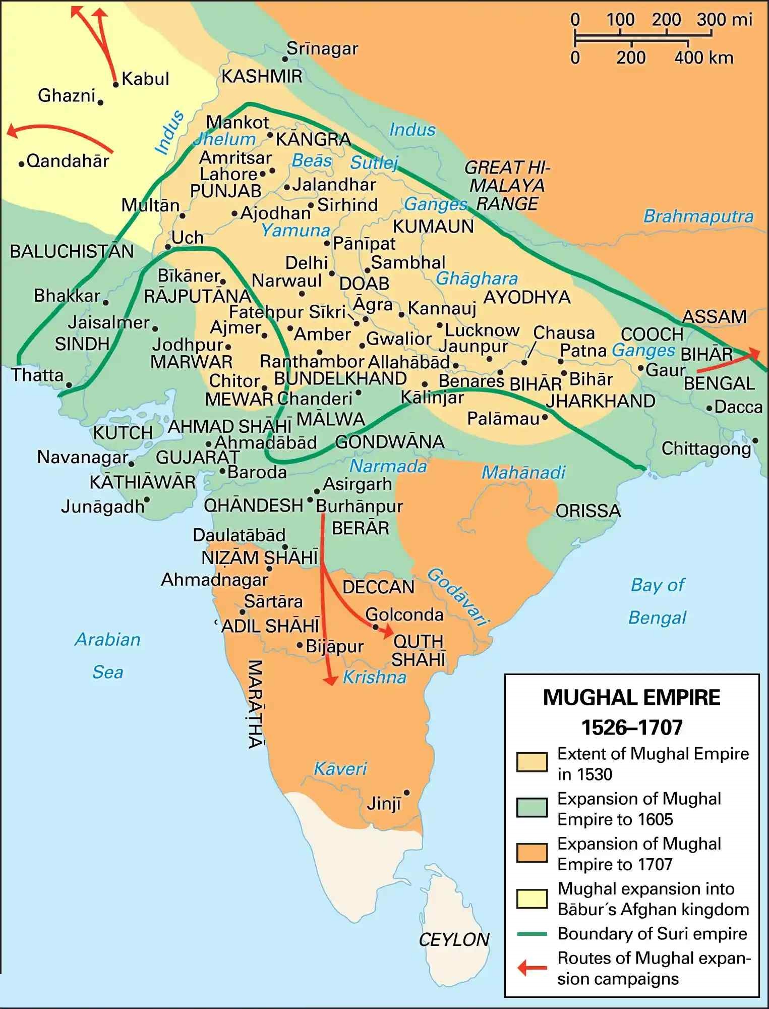 In 1526, Babur enlarged the Mughal Empire of India and Afghanistan. Among other disciplines, the Mughals produced painting, architecture, and literature. However, their power also witnessed disputes with newly formed European nations and a downturn under weak successors.